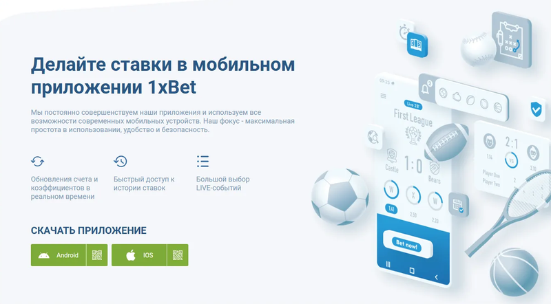 Приложение 1xbet можно скачать напрямую с официального сайта, где доступны не только ссылки для скачивания для андроид и IOS, но и подробная пошаговая инструкция. После установки приложения 1xbet вход на сайт выполняется без зеркал и ограничений. Преимущества установки приложения: